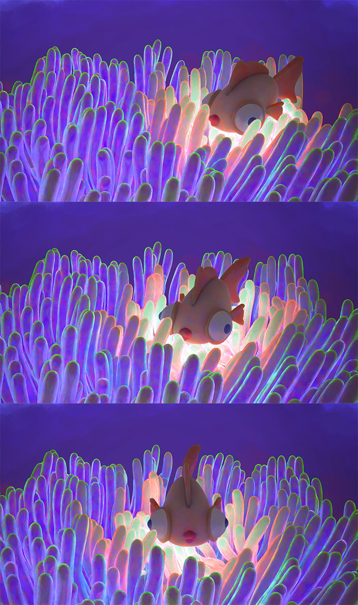 The first project I made in full 3D in Blender. The animation in generated procedurally, I had fun creating the light of the anemone and finding a way to stylise it all